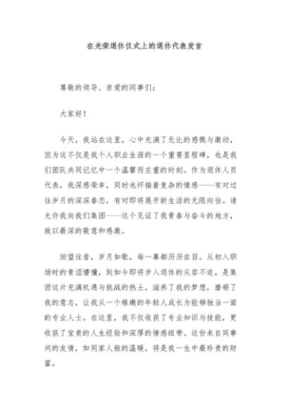 / 【七哥公文】2024年:在光荣退休仪式上的退休代表发言+更多免费公文+VX:QiGeGongWen2024