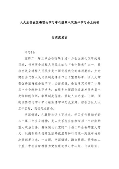 【七哥公文】2024年:人大主任在区委理论学习中心组第八次集体学习会上的研讨交流发言+更多免费公文+VX:QiGeGongWen2024