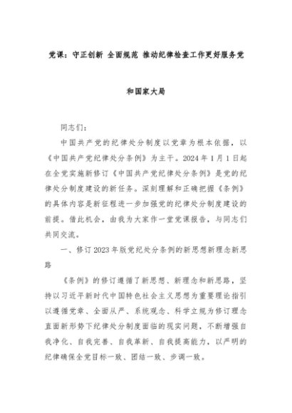 【七哥公文】2024年:党课:守正创新 全面规范 推动纪律检查工作更好服务党和国家大局+更多免费公文+VX:QiGeGongWen2024