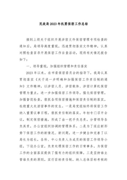 / 【七哥公文】2024年:民政局2023年机要保密工作总结+更多免费公文+VX:QiGeGongWen2024