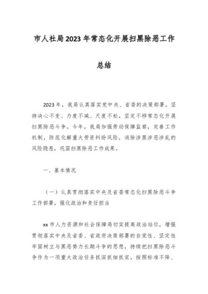 / 【七哥公文】2024年:市人社局2023年常态化开展扫黑除恶工作总结+更多免费公文+VX:QiGeGongWen2024