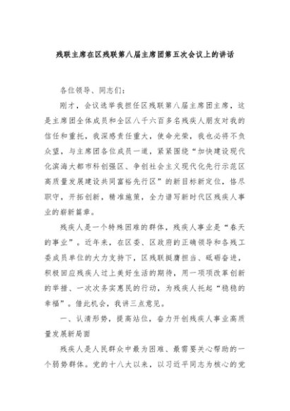 / 【七哥公文】2024年:残联主席在区残联第八届主席团第五次会议上的讲话+更多免费公文+VX:QiGeGongWen2024