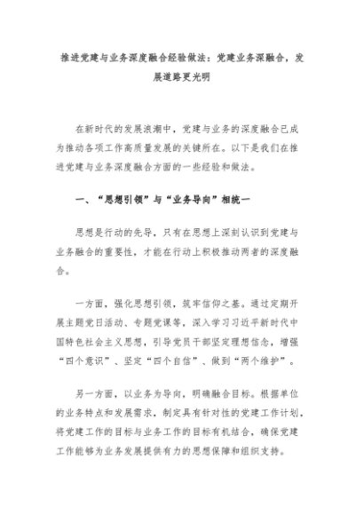 【七哥公文】2024年:推进党建与业务深度融合经验做法:党建业务深融合,发展道路更光明+更多免费公文+VX:QiGeGongWen2024