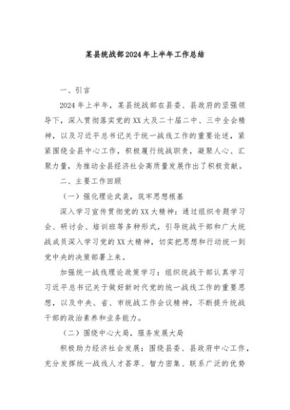 / 【七哥公文】2024年:某县统战部2024年上半年工作总结+更多免费公文+VX:QiGeGongWen2024