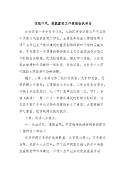 【七哥公文】2024年:改进作风、狠抓落实工作推进会议讲话+更多免费公文+VX:QiGeGongWen2024