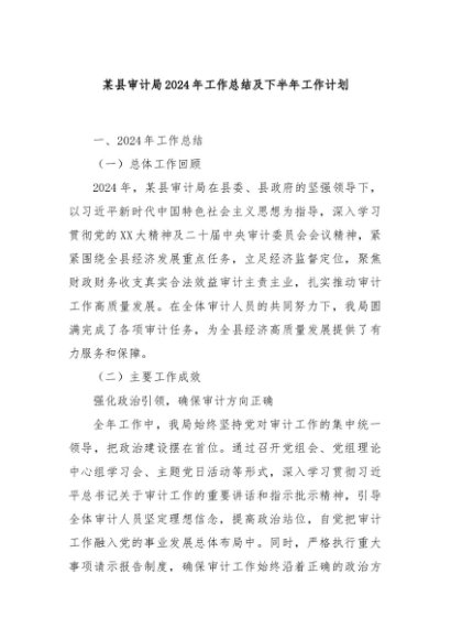 / 【七哥公文】2024年:某县审计局2024年工作总结及下半年工作计划+更多免费公文+VX:QiGeGongWen2024