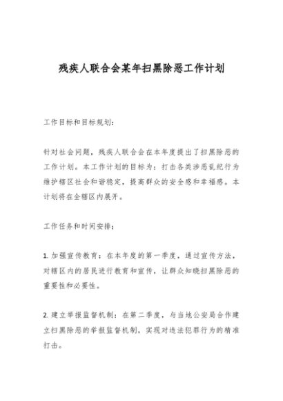 【七哥公文】2024年:残疾人联合会某年扫黑除恶工作计划+更多免费公文+VX:QiGeGongWen2024