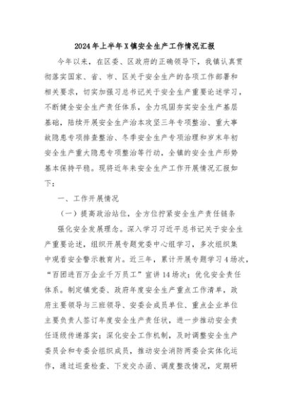 / 【七哥公文】2024年:2024年上半年X镇安全生产工作情况汇报+更多免费公文+VX:QiGeGongWen2024