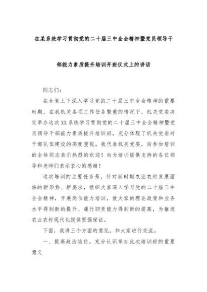 【七哥公文】2024年:在某系统学习贯彻党的二十届三中全会精神暨党员领导干部能力素质提升培训开班仪式上的讲话+更多免费公文+VX:QiGeGongWen2024
