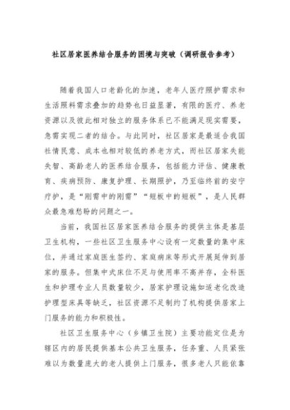 / 【七哥公文】2024年:社区居家医养结合服务的困境与突破(调研报告参考)+更多免费公文+VX:QiGeGongWen2024