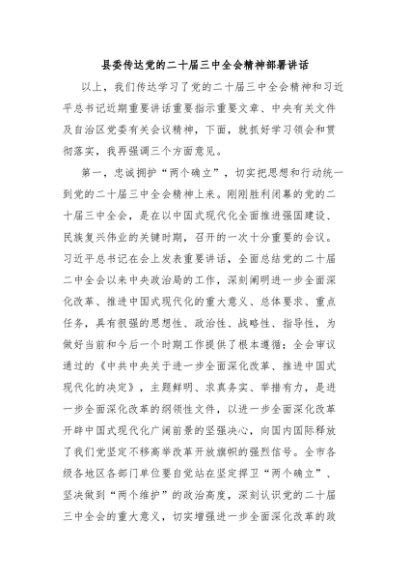 【七哥公文】2024年:县委传达党的二十届三中全会精神部署讲话+更多免费公文+VX:QiGeGongWen2024