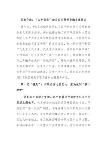 / 【七哥公文】2024年:经验交流:“四把钥匙”助力公司做好金融支撑服务+更多免费公文+VX:QiGeGongWen2024