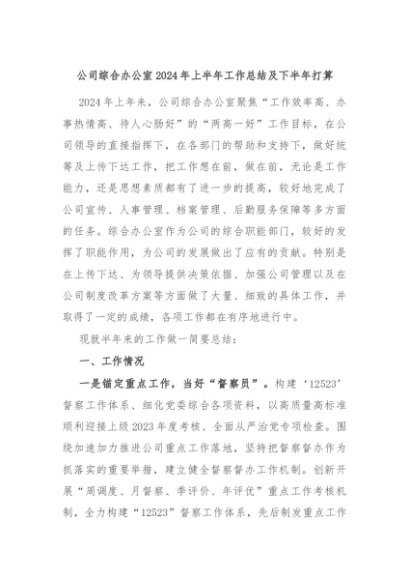 【七哥公文】2024年:公司综合办公室2024年上半年工作总结及下半年打算+更多免费公文+VX:QiGeGongWen2024