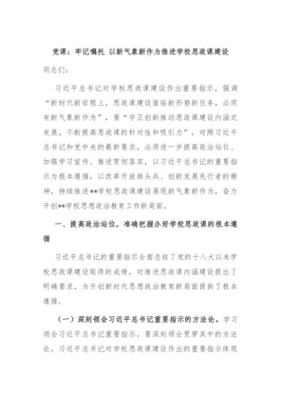 / 【七哥公文】2024年:党课:牢记嘱托 以新气象新作为推进学校思政课建设+更多免费公文+VX:QiGeGongWen2024