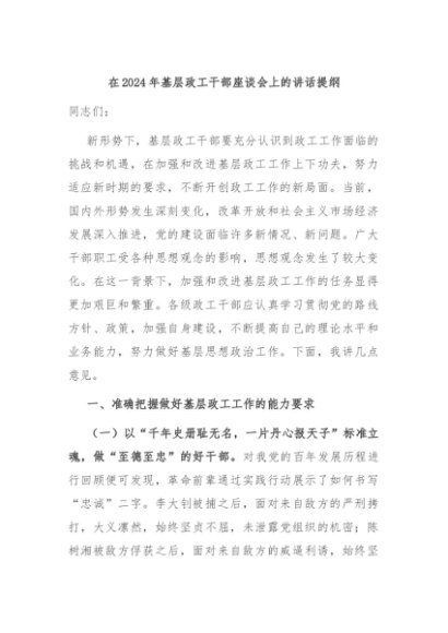 / 【七哥公文】2024年:在2024年基层政工干部座谈会上的讲话提纲+更多免费公文+VX:QiGeGongWen2024