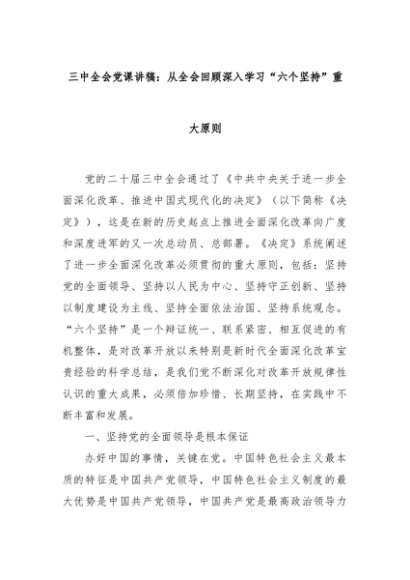 【七哥公文】2024年:三中全会党课讲稿:从全会回顾深入学习“六个坚持”重大原则 (1)+更多免费公文+VX:QiGeGongWen2024