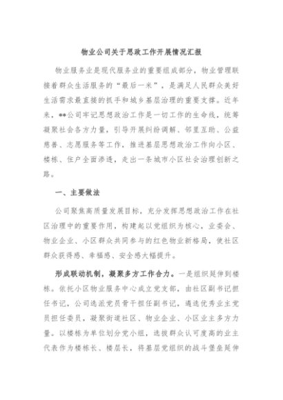 / 【七哥公文】2024年:物业公司关于思政工作开展情况汇报+更多免费公文+VX:QiGeGongWen2024