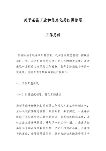 / 【七哥公文】2024年:关于某县工业和信息化局扫黑除恶工作总结+更多免费公文+VX:QiGeGongWen2024