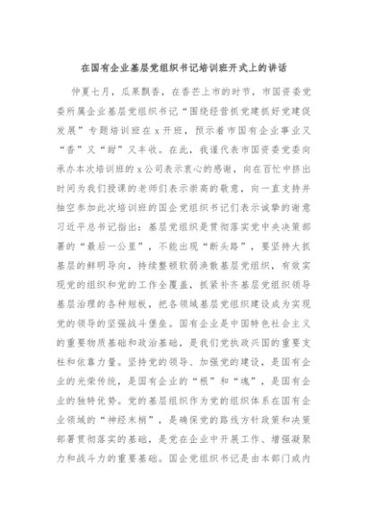 / 【七哥公文】2024年:在国有企业基层党组织书记培训班开式上的讲话+更多免费公文+VX:QiGeGongWen2024