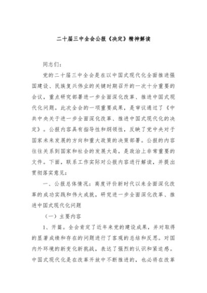/ 【七哥公文】2024年:二十届三中全会公报《决定》精神解读+更多免费公文+VX:QiGeGongWen2024