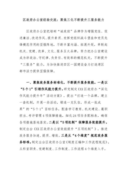 / 【七哥公文】2024年:区政府办公室经验交流:聚焦三化不断提升三服务能力+更多免费公文+VX:QiGeGongWen2024