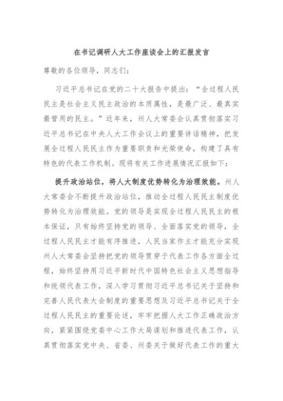 / 【七哥公文】2024年:在书记调研人大工作座谈会上的汇报发言+更多免费公文+VX:QiGeGongWen2024