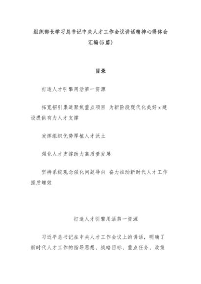 【七哥公文】2024年:(5篇)组织部长学习总书记中央人才工作会议讲话精神心得体会汇编+更多免费公文+VX:QiGeGongWen2024