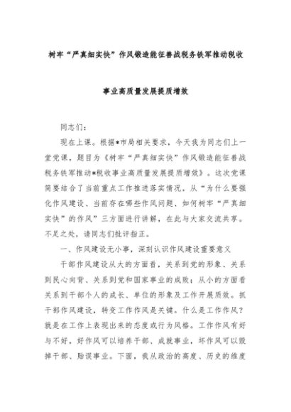 【七哥公文】2024年:树牢“严真细实快”作风锻造能征善战税务铁军推动税收事业高质量发展提质增效+更多免费公文+VX:QiGeGongWen2024