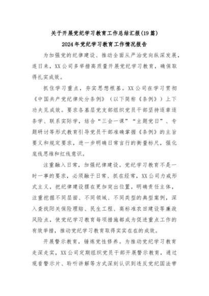 【七哥公文】2024年:(19篇)关于开展党纪学习教育工作总结汇报+更多免费公文+VX:QiGeGongWen2024