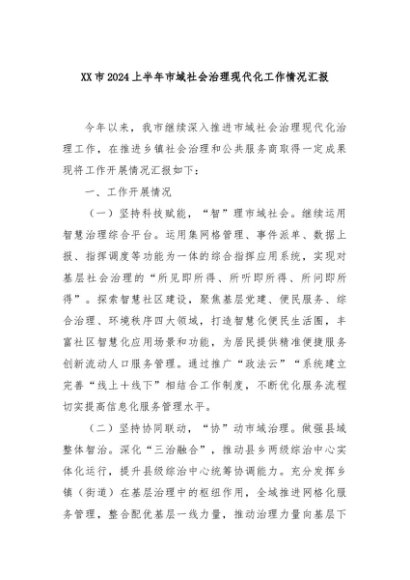 【七哥公文】2024年:XX市2024上半年市域社会治理现代化工作情况汇报+更多免费公文+VX:QiGeGongWen2024