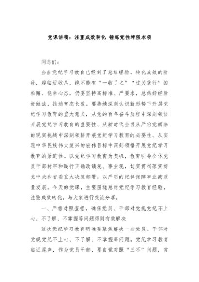 / 【七哥公文】2024年:党课讲稿:注重成效转化 锤炼党性增强本领+更多免费公文+VX:QiGeGongWen2024