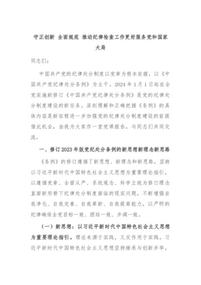 【七哥公文】2024年:守正创新 全面规范 推动纪律检查工作更好服务党和国家大局+更多免费公文+VX:QiGeGongWen2024