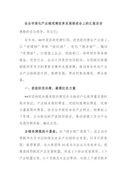 / 【七哥公文】2024年:在全市深化产业链党建改革发展推进会上的汇报发言+更多免费公文+VX:QiGeGongWen2024