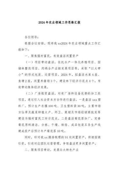 / 【七哥公文】2024年:2024年农业领域工作思路汇报+更多免费公文+VX:QiGeGongWen2024