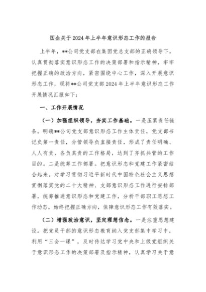/ 【七哥公文】2024年:国企关于2024年上半年意识形态工作的报告+更多免费公文+VX:QiGeGongWen2024