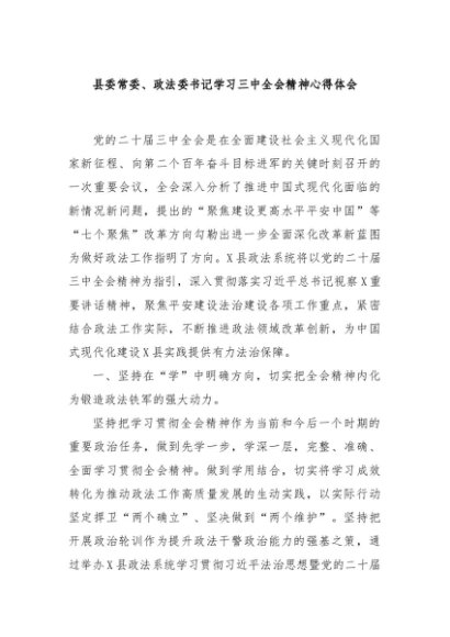 【七哥公文】2024年:县委常委、政法委书记学习三中全会精神心得体会 (1)+更多免费公文+VX:QiGeGongWen2024