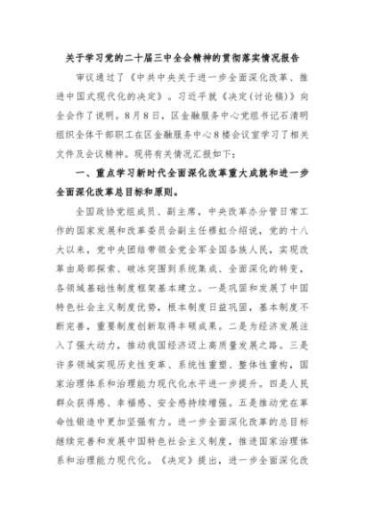 【七哥公文】2024年:关于学习党的二十届三中全会精神的贯彻落实情况 (1)+更多免费公文+VX:QiGeGongWen2024