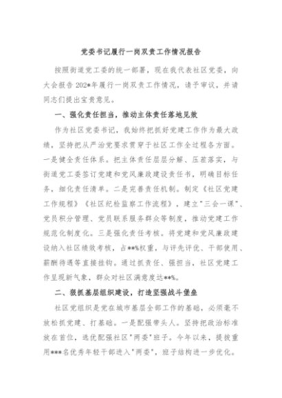 / 【七哥公文】2024年:党委书记履行一岗双责工作情况报告+更多免费公文+VX:QiGeGongWen2024