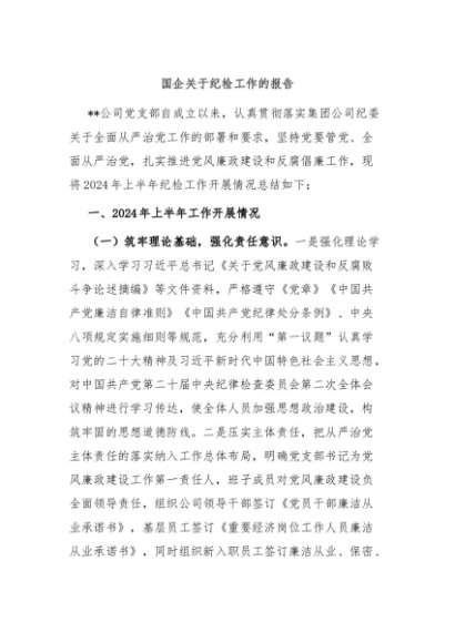 / 【七哥公文】2024年:国企关于纪检工作的报告+更多免费公文+VX:QiGeGongWen2024