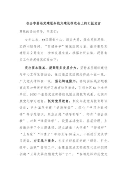 / 【七哥公文】2024年:在全市基层党建服务能力建设推进会上的汇报发言+更多免费公文+VX:QiGeGongWen2024