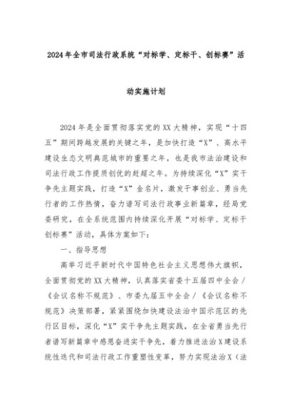 【七哥公文】2024年:2024年全市司法行政系统“对标学、定标干、创标赛”活动实施计划+更多免费公文+VX:QiGeGongWen2024