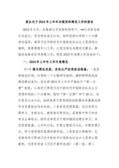 / 【七哥公文】2024年:国企关于2024年上半年加强党的建设工作的报告+更多免费公文+VX:QiGeGongWen2024