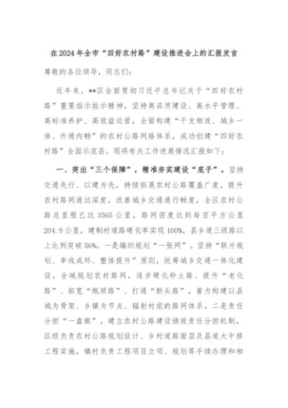 【七哥公文】2024年:在2024年全市“四好农村路”建设推进会上的汇报发言+更多免费公文+VX:QiGeGongWen2024