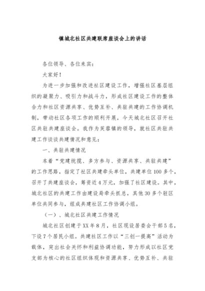 / 【七哥公文】2024年:镇城北社区共建联席座谈会上的讲话+更多免费公文+VX:QiGeGongWen2024