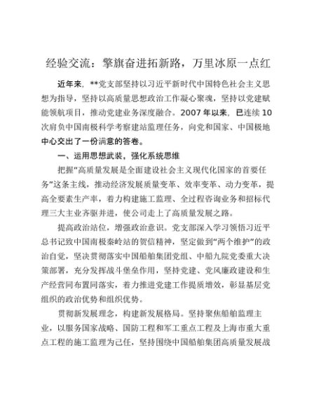 【七哥公文】2024年:经验交流:擎旗奋进拓新路,万里冰原一点红,更多免费公文资料,+VX:QiGeGongWen2024+更多免费公文+VX:QiGeGongWen2024