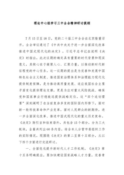 【七哥公文】2024年:理论中心组学习三中全会精神研讨提纲,更多免费公文资料,+VX:QiGeGongWen2024+更多免费公文+VX:QiGeGongWen2024