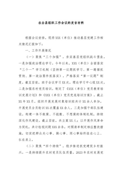 / 【七哥公文】2024年:在全县组织工作会议的发言材料+更多免费公文+VX:QiGeGongWen2024