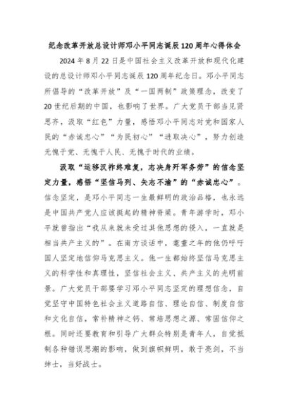 【七哥公文】2024年:纪念改革开放总设计师邓小平同志诞辰120周年心得体会,更多免费公文资料,+VX:QiGeGongWen2024+更多免费公文+VX:QiGeGongWen2024