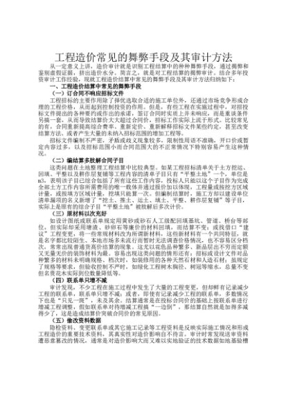 【七哥公文】2024年:工程造价常见的舞弊手段及其审计方法,更多免费公文资料,+VX:QiGeGongWen2024+更多免费公文+VX:QiGeGongWen2024