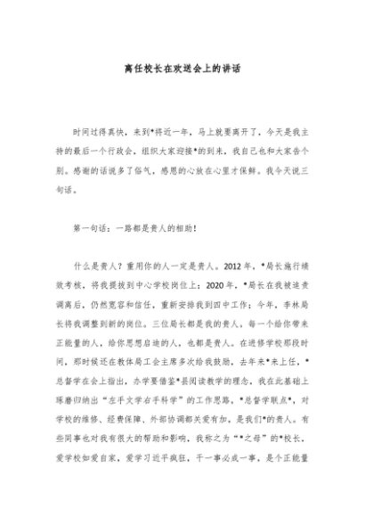 【七哥公文】2024年:离任校长在欢送会上的讲话,更多免费公文资料,+VX:QiGeGongWen2024+更多免费公文+VX:QiGeGongWen2024